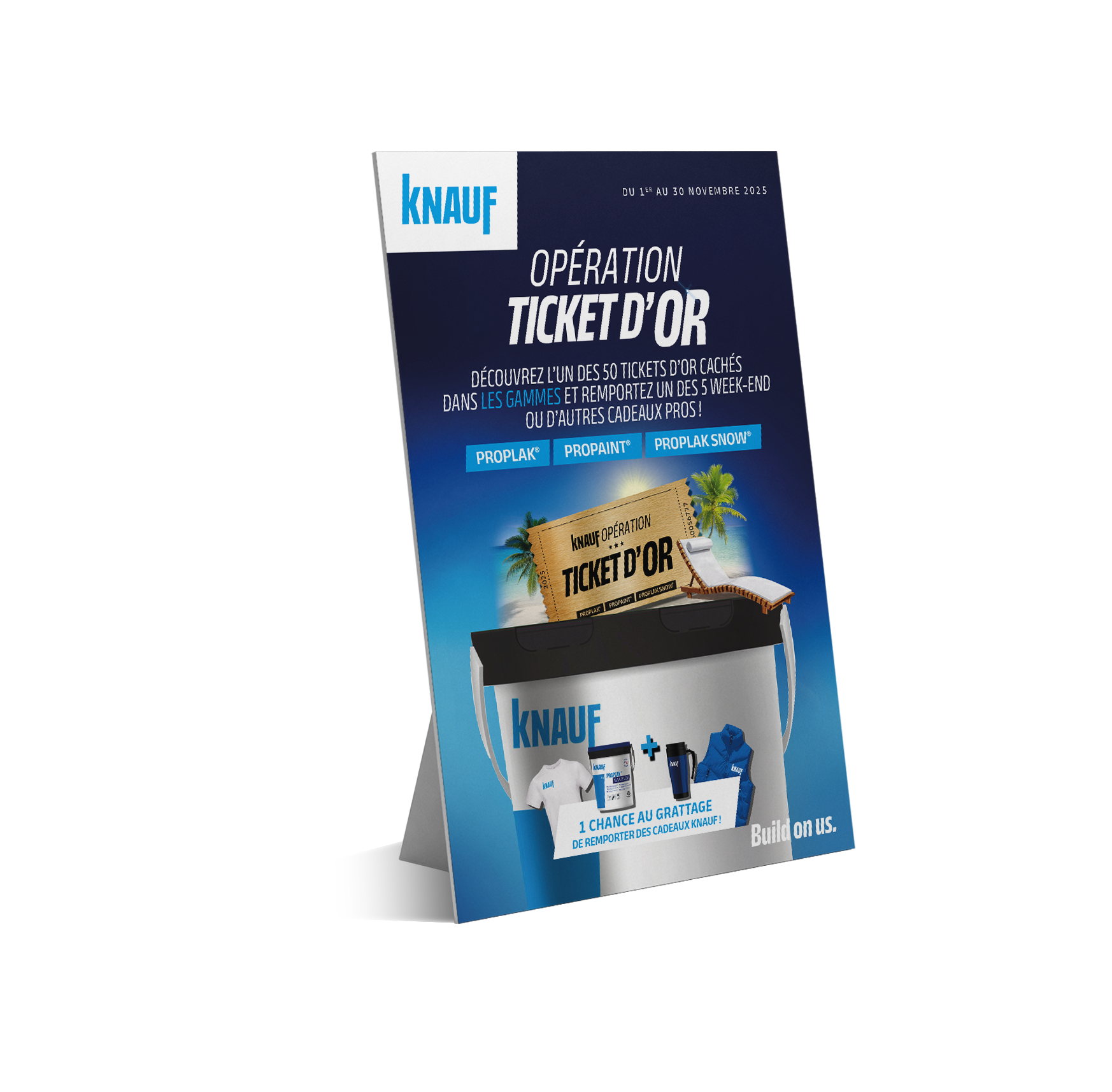 Depuis 2019, c’est une tradition bien ancrée chez Knauf. Le spécialiste des plaques de plâtre et de l’isolation lance une grande opération commerciale au mois à l’automne. Mais cette année sera exceptionnelle avec la mise en place de 50 “Ticket d’Or” cachés dans les produits Proplak et Propaint.