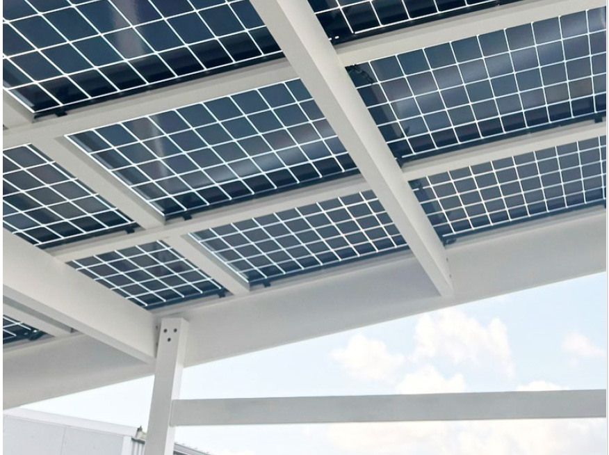Closura obtient une Enquête de Technique Nouvelle pour son procédé Closun, appliqué aux ombrières photovoltaïques sur charpentes nues. Les structures sont réalisées en aluminium qualité marine, matériau léger et naturellement résistant à la corrosion. Les profilés, conçus en interne, présentent un design sans nervures visibles et permettent de grandes portées, tandis que la structure repose sur quatre poteaux de 110 mm avec pose par scellement ou platines.